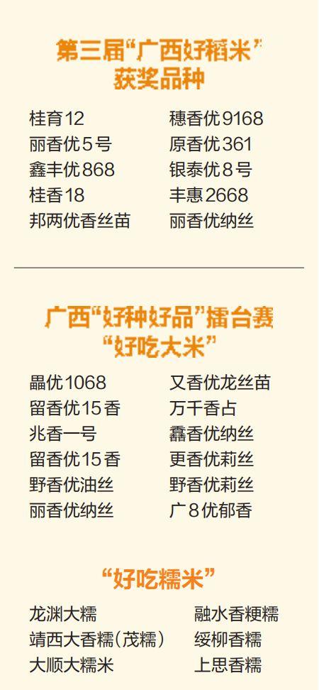 据了解,推介会上公布和推介了第三届“广西好稻米”品种10个、2020年广西“好种好品”擂台赛“好吃大米”12个以及6个“好吃糯米”、6个“好吃特色稻”。