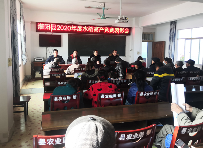1月14日,灌阳县在黄关镇联德村召开2020年水稻高产竞赛表彰会,对在超级稻高产竞赛活动中获得高产的20多位水稻种植户进行表彰奖励,激发群众种粮积极性。