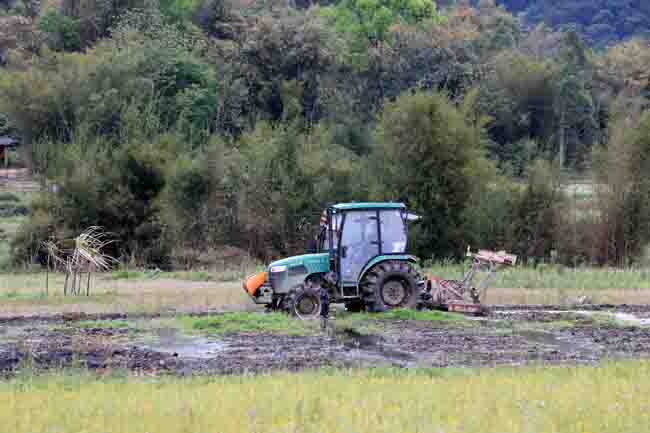 3月20日,在广西柳州市融安县大良镇和南村,农民驾驶拖拉机耙田,准备种植早稻。当日是农历二十四节气中的“春分”。广西柳州市融安县各族群众抢抓农时,耙田整地春耕备播,力争取得好收成。“春分”节气,各地农民忙碌在田间地头。