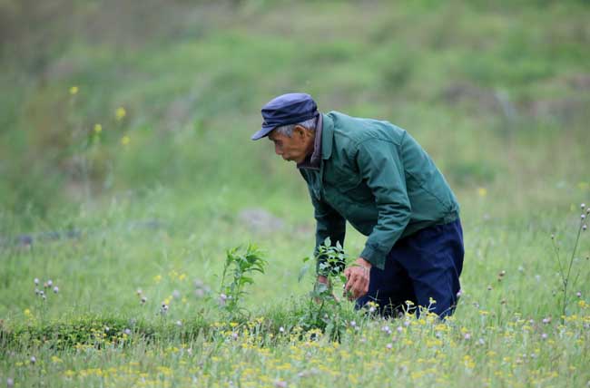在广西柳州市融安县大良镇和南村,一名农民在田间劳作。