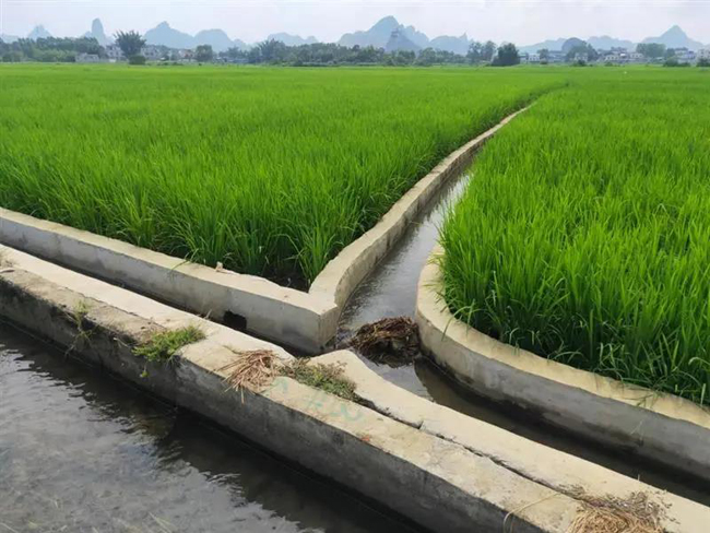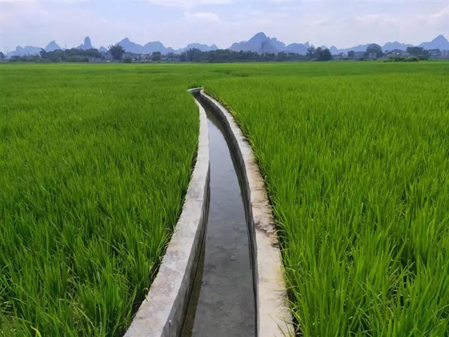 武宣县农业农村局相关负责人介绍,2019年以来,全县大力实施高标准农田建设项目,通过合理的路网、渠道布局,水资源利用效率明显提高,目前项目区内所有渠道通水到田,禾苗长势良好,秋粮丰收在望。金鸡乡片区仁元村高标准农田建设项目渠道通水到田,禾苗长势良好。