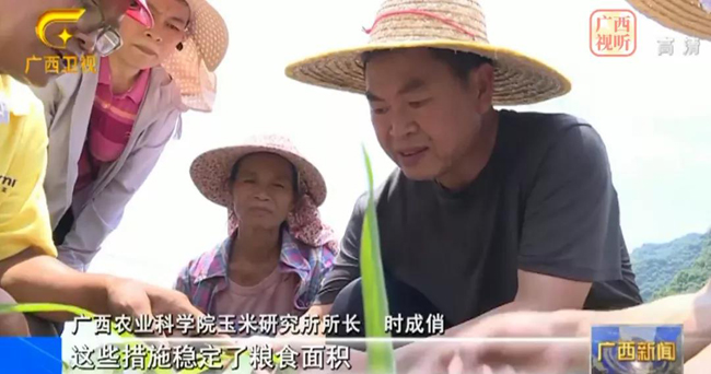 在都安地苏镇拉棠村,农户们正在进行玉米间苗作业。这几年,广西农业科学院针对都安地质和气候因素引导当地改种桂单系列玉米。
