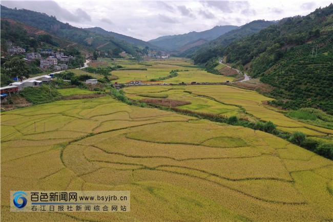 金秋稻米香,谷农收割忙。在西林县足别瑶族苗族乡九龙山泉千亩生态有机水稻产业园,一块块金色的稻田,汇成了金色的海洋。谷粒颗颗饱满,沉甸甸地压弯了稻秆,风吹稻浪,稻香扑鼻。收割机的轰鸣声、村民的打谷声交织成一首动听的“丰收曲”。