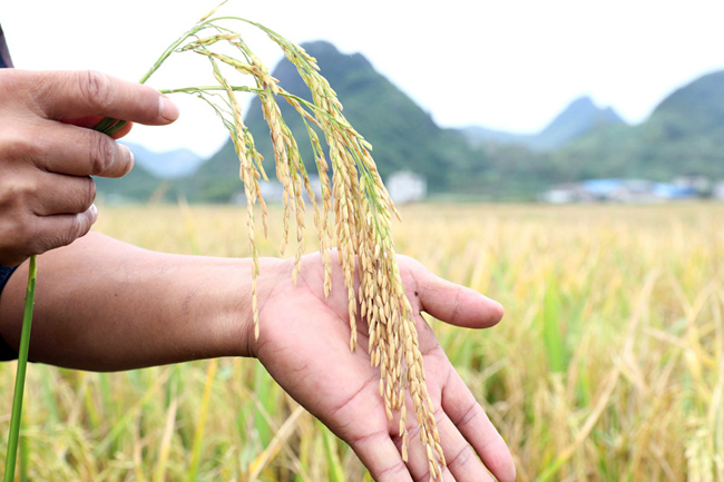 “今年晚稻长势还可以,预计亩产有500公斤,总产量大概有3万多公斤。”水稻种植户韦建康充满信心地说。韦建康是百朋镇小山村的种粮大户之一,今年种植的100多亩优质稻喜获丰收,其中双季稻种植面积70多亩。“单改双”后水稻年产量增加不少,韦建康家中堆满了金灿灿的稻谷,基本不愁卖。