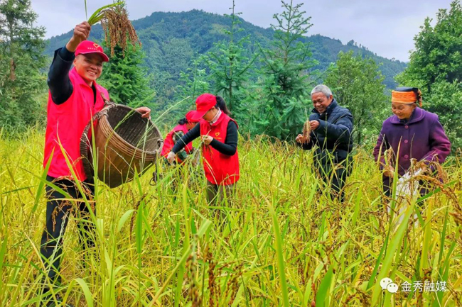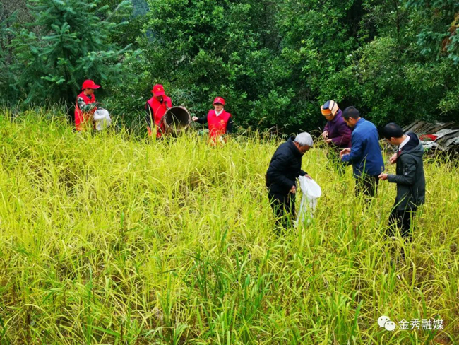 新时代文明实践志愿者帮助瑶族同胞采收岭禾。
