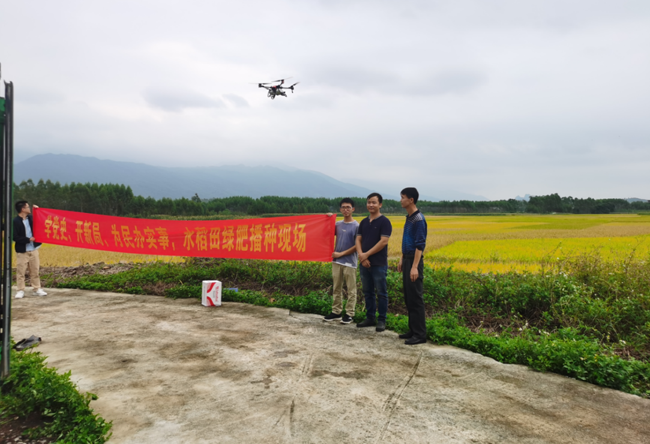 在武鸣区两江镇福江村的高标准农田现场,飞手操作着无人机来回穿梭在田间,进行播种作业。为了让浸好的绿肥种子更均匀地播散到田里,无人机飞行高度控制在7米到10米之间,飞行速度每秒1米到3米。随着无人机的飞过,绿肥种子均匀的撒到水田里,犹如一场过境的及时雨,像这样的速度,五分钟便可完成一亩地的播种。利用无人机进行播种仅仅只是两江镇高标准农田水稻种植的一个开端,今后该镇将继续引进无人机施肥、无人机病虫害防治以及稻谷成熟后的机械化收割等技术。