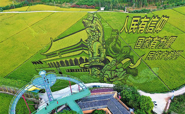 大陆村每年按照不同主题打造稻田艺术画,已成为网红打卡地