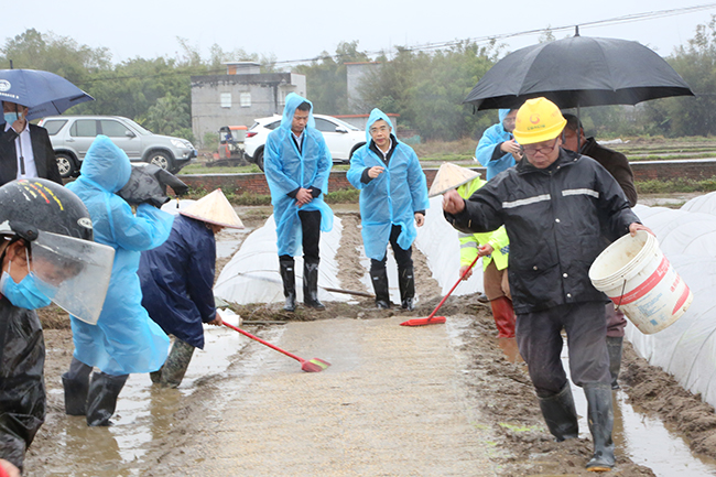 图为黄智宇一行在春耕备耕现场调研农作物备耕情况