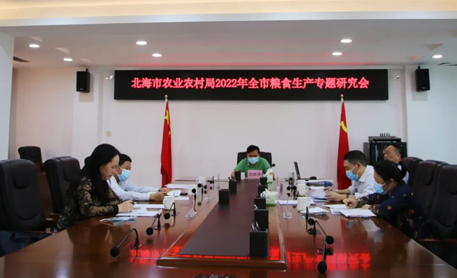 为深入贯彻落实党中央、国务院和自治区党委、政府以及市委、市政府关于保障粮食安全决策部署,切实扛稳保障粮食安全的政治责任,确保完成2022年全市粮食生产各项目标任务。3月17日下午,北海市农业农村局召开2022年全市粮食生产专题研究会。会上,苏东梅总农艺师通报了当前全市粮食生产工作情况,局党组其他成员也分别就今年粮食生产工作提出意见和建议。