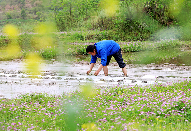 一年之计在于春,一年好景看春耕。3月25日,在融安县大良镇良北村,几名农民正在田间地头平整土地、撒种育秧、准备农用物资,广袤的桂北大地一派农忙景象。