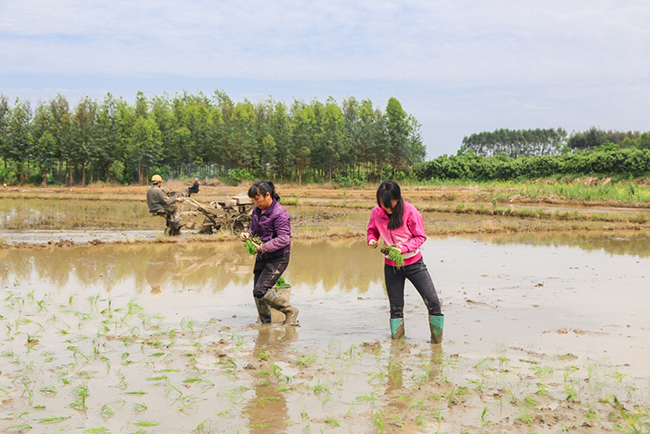 寺村镇谭村村委的耕地面积有7873亩,种植有水稻、水果、甘蔗等,其中水田面积有3400亩。“现在已经有1700亩田完成了早稻种植,占种植任务的50%。我们打算在清明前将3400亩田全部种完。” 谭村村委副主任陆守存说道。