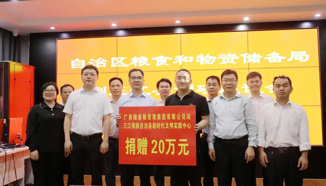 调研期间,自治区粮食和物资储备局向唐朝村、大洲村、良帽村分别捐赠电脑和书籍,向三江侗族自治县新时代文明实践中心捐赠20万建设资金,向宜阳大桥建设捐赠15万资金。