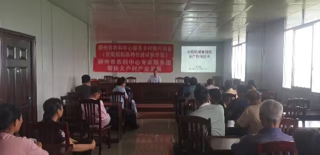 6月10日,专家服务团成员——自治区科技特派员、柳州市农科中心覃瑞德高级农艺师到柳州市柳城县古砦仫佬族乡大户村开展科技服务和当前连续降雨影响水稻防灾减灾技术培训,参加培训的人员共37人。