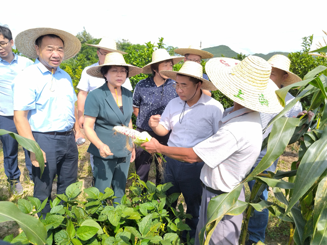 全州县才湾镇邓吉村委调研大豆玉米带状复合种植