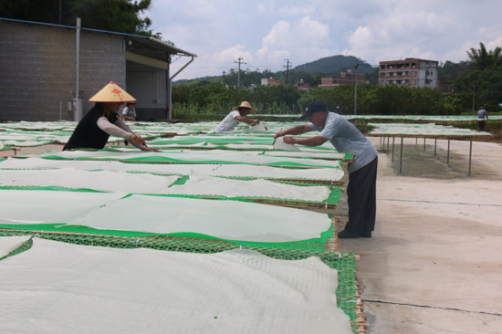 “天气好的时候,我们厂每日能生产出750公斤三堡米粉,一个月能生产出15吨,一年能赚60多万元。”岑溪市三堡镇佳美米粉厂经理卢宇平一边打包着米粉一边说,三堡制作米粉历史悠久,为了传承利用好这个传统产业,他专门向老一辈的亲戚学习了制作米粉的手艺。2012年,卢宇平抓住商机,在家中米粉小作坊的基础上创办了米粉加工厂,现在日子越过越红火。