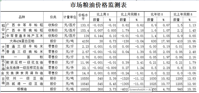 广西市场粮油价格周报表(2022年第29期)