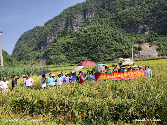 近日,东兰县农业农村局科技特派员组织乡镇农业技术推广站技术员、种粮大户、当地群众等50多人到武篆镇色故村进行节水抗旱稻直播栽培暨旱优78现场产量验收观摩会。通过产量验收正确评价各品种表现,为下一步全县大面积推广旱优78、旱优73、旱优3号等组合提供科学依据。