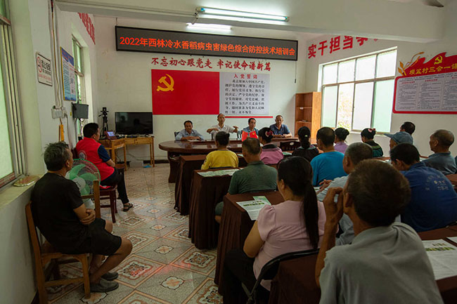 为进一步增强农户绿色健康发展意识,减少农药使用量,打造石山区冷水香稻绿色健康发展之路。近日,西林县农业农村局组织农技人员深入到那佐苗族乡平别、坝盆等村开展冷水香稻病虫害绿色综合防控技术培训,进一步提高了冷水香稻种植户病虫害绿色综合防控技术水平,助力石山区冷水香稻增产增收,受到广大群众的一致好评。