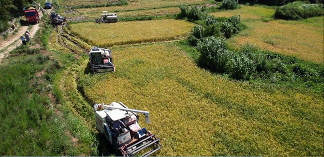 早稻机械化收割现场