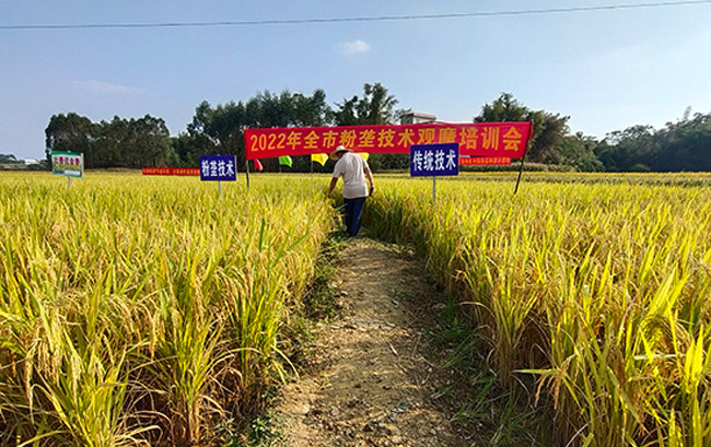 广西农牧大米网讯 近日,2022年全市粉垄技术观摩培训会在港南区新塘镇下宋村水稻粉垄种植示范基地进行,出席培训会的广西农科院专家宣布,港南区新塘镇下宋村水稻种植示范基地采用粉垄技术耕作,晚造水稻增产28%。