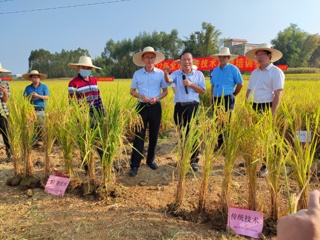 观摩会上,广西农科院韦本辉专家对粉垄技术、同品种的水稻使用该项技术前后的生长及产量情况等进行了详细介绍。