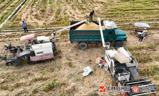 “目前已进入收割的尾声。大田亩均产量在200公斤左右,中等产量的稻田亩均产量约175公斤,是个丰收年。”龙潭镇南坡村村支书李武海告诉记者。