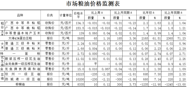 广西市场粮油价格周报表(2022年第42期)