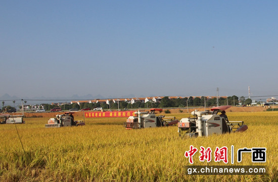 近日,由广西壮族自治区农机中心主办,百色市农机中心承办的2022年全区水稻机收减损大比武活动,在百色市田阳区百育镇四那村峒忙屯启动。