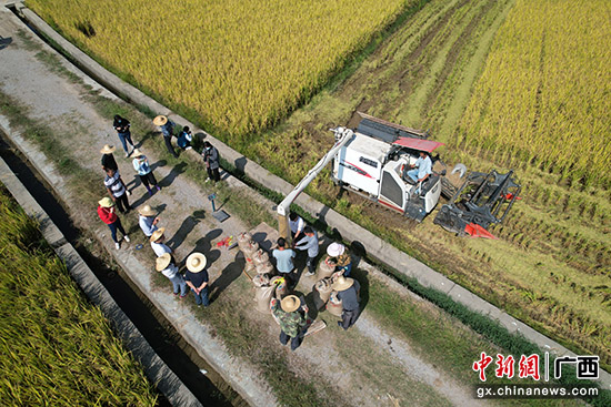 “今年晚造水稻受天气影响的很小,田间管理也比较到位,水稻收成非常不错。经过现场测产,三块田亩产量均超过500公斤,最高亩产650多公斤,这让我对水稻种植水更有信心了。”近日,贵港市港北区庆丰镇新圩村的100亩高产攻关示范片水稻迎来测产验收,种植户覃敏超说。