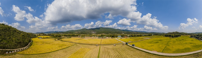 大片的稻田迎来丰收。