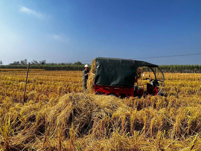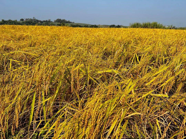 近日,宁明县海渊镇那明村香糯米喜获丰收。走在稻田中,随着微风拂过,浓浓的糯米香味扑鼻而来,沁人心脾……此时大地已成一片金黄,广大村民正抢抓农时收割香糯稻。