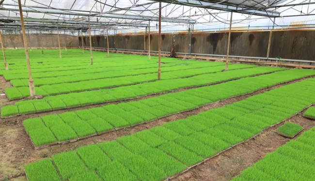 昌隆公司育秧基地大棚里的秧苗长势良好。黄智超 摄