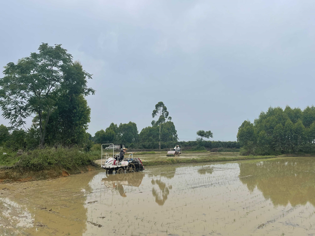 5月25日,平南县农业农村局科技特派员莫明深入丹竹镇红卫屯土地整改治理的田间地头对农机操作员详细讲解了水稻机械化插秧技术的操作要点、作业要求等内容。