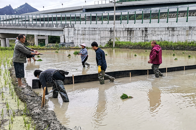为减少化肥用量,减轻环境污染,提高耕地质量,改善水稻品质,2023年5月24日,南丹县土肥站技术员在八圩乡关西村关西屯开展了水稻增施有机肥效果监测对比试验。