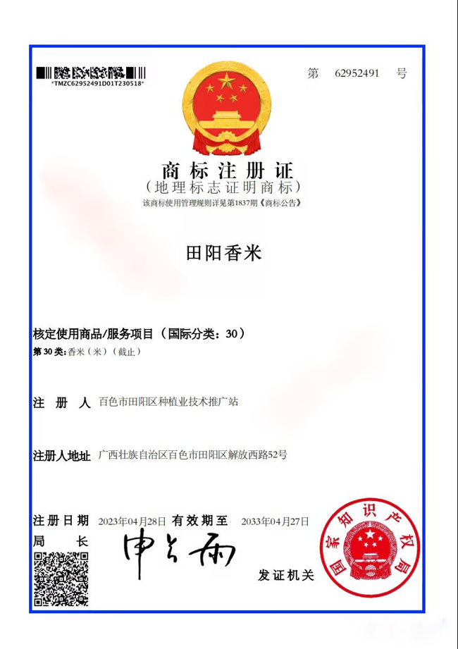 此次田阳香米获批国家地理标志保护产品,将进一步有效保护田阳香米知识产权,带动田阳香米产业发展壮大,扩大地理标志助力乡村振兴的辐射效应,为地方经济高质量发展服务。