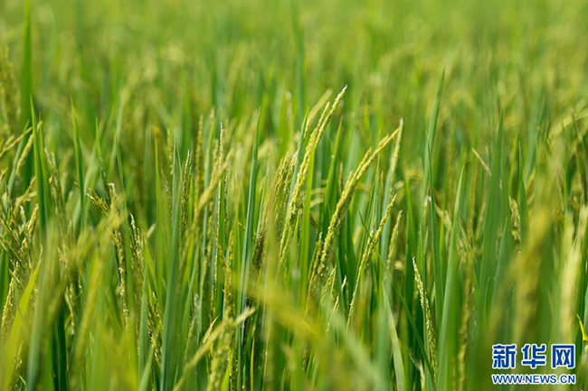 水稻示范基地富硒水稻长势良好。新华网 蒋颖 摄