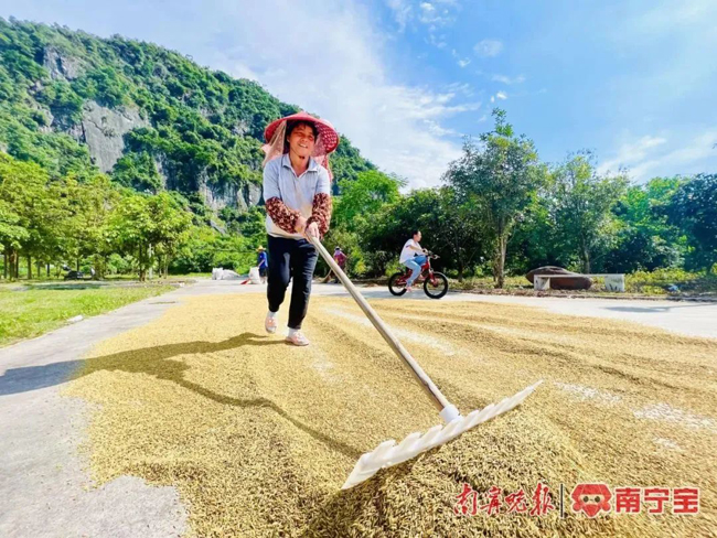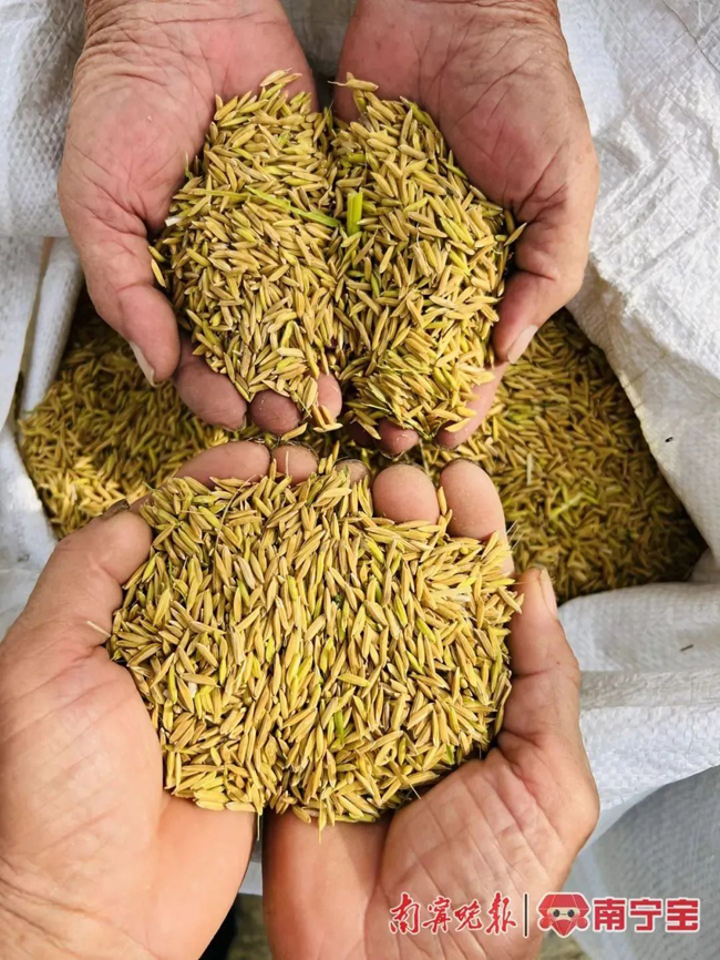 手捧一把饱满的稻谷,微风过处,仿佛闻到上林大米独特的饭香。