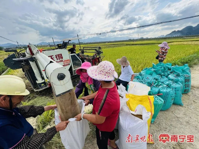 田野间,收割机来回穿梭,奏响着丰收的乐章,空气中弥漫着稻草特有的清香。装稻谷、搬稻谷……村民们在田间和晒谷场上忙碌着,一张张笑脸上洋溢着丰收的喜悦。
