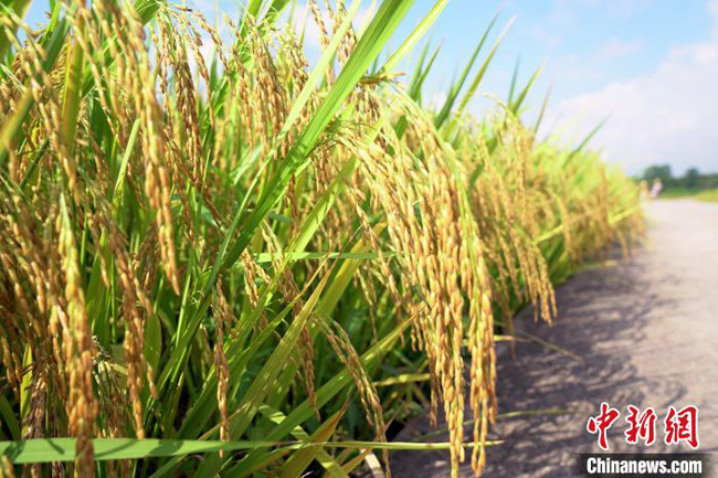 广西贵港市港北区庆丰镇稻谷丰收。 岑记华 摄