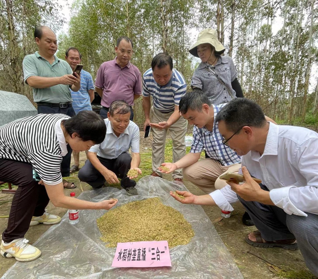 近日,广西大学、广西农业农村厅等有关专家,对广西农业科学院经济作物研究所韦本辉团队首次实施的全生育期零灌溉的“水稻粉垄直播‘三合一’技术示范”项目进行现场测产。结果显示:平均亩产湿谷700.5公斤,折亩产干谷525.4公斤,标志着水稻粉垄直播“三合一”技术首次试验成功。
