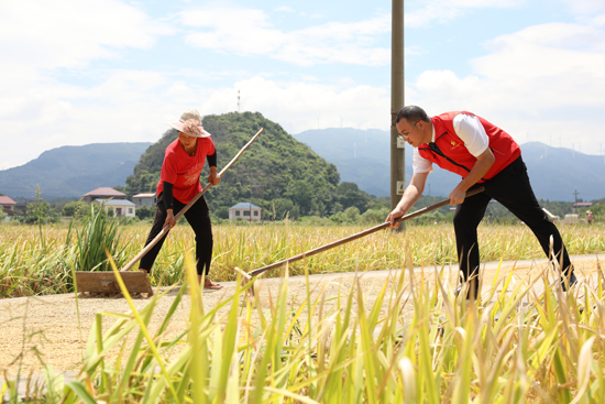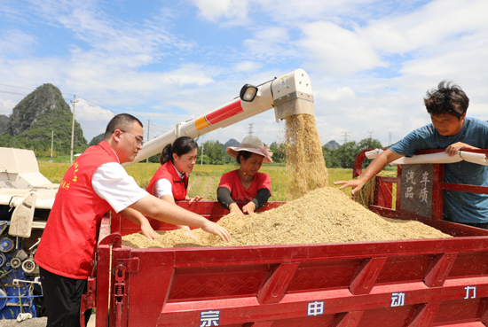 兴安农合行“红马甲”帮助农户收晒稻谷。梁丽娜摄