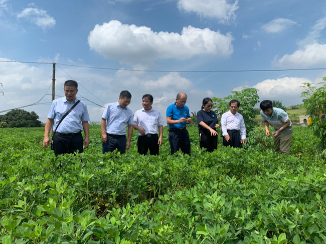 当天上午,指导组先后实地调研了塘步镇大豆玉米带状复合种植基地、金鸡镇水稻统防统治现场及花生、红薯种植基地等情况,向种植主体了解生产情况和存在困难,并提供了技术指导意见。