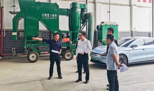图为余浩学到储备粮库调研