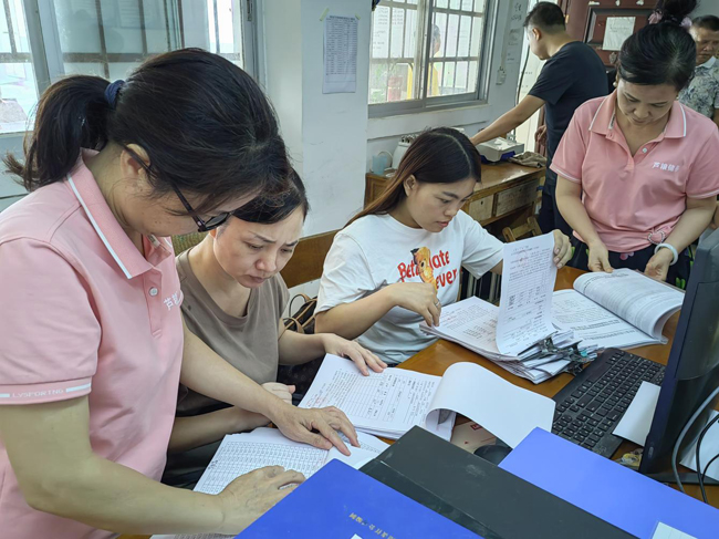 图为检查人员查阅2023年新入库政策性夏粮相关台账