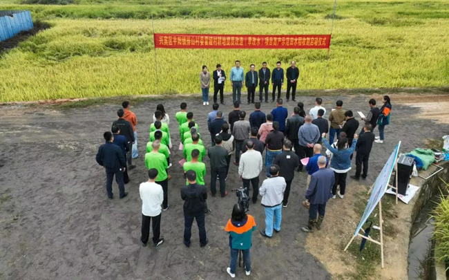 11月7日,兴宾区耕地提质改造(旱改水)项目高产示范田水稻收割现场会在平阳镇举行,展示项目建设助推乡村振兴成果。经现场测产,“旱改水”地块亩产约1200斤。