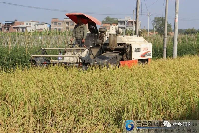 七联村是田阳区水稻高产攻关示范基地,种植的400多亩晚稻已进入收获期,全部采用联合收割机进行收割,机械化操作大大减少了人力,提高了效率。”田阳区百育镇七联村农户凌妙善介绍说。近日,在田阳区百育镇七联村水稻高产攻关示范基地,几百亩晚稻满目金黄。趁着晴好天气,数台收割机在稻田里来回穿梭,开展抢收作业。