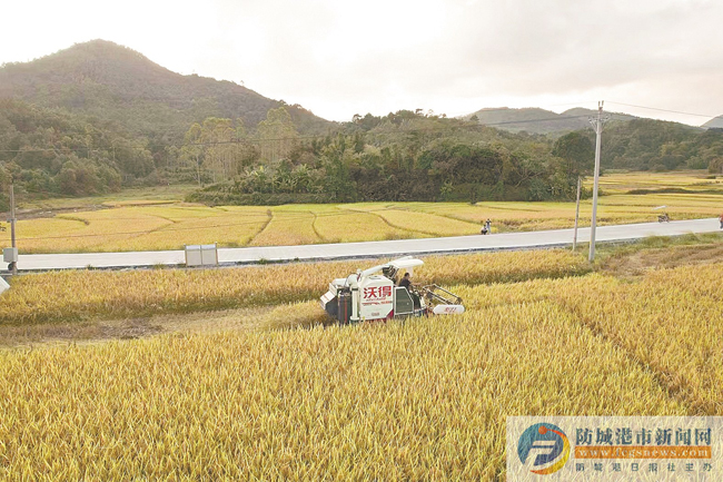 眼下已入初冬,但在防城区大菉镇,仍然能感受到村野田间的勃勃生机。连日来,该镇那德村晚稻陆续成熟,农民正抢抓晴好天气收割晚稻,视野里金色稻田起伏,耳朵旁农机隆隆作响,一派稻浪欢歌的热闹景象。