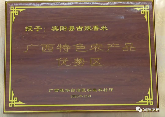据了解,宾阳县古辣香米广西特色农产品优势区建设范围包括全县16个镇,总面积为2308平方公里,古辣香米种植面积20万亩。