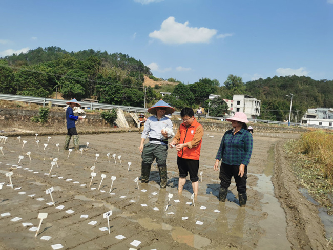 科技特派员韦彦与团队成员们深入田间地头,亲自指导农民们进行水稻新材料的播种与管理。对水稻田土壤肥力进行了详细的调查和分析,以确保土壤条件能够满足新材料的生长需求。他们还与当地农民紧密合作,共同制定了科学的种植方案,包括施肥、灌溉、病虫害防治等各个环节。