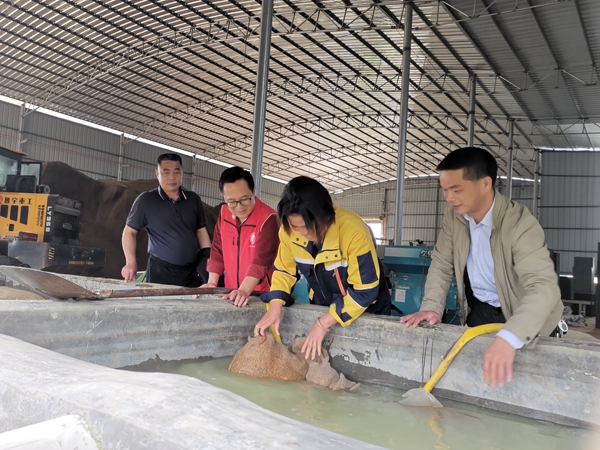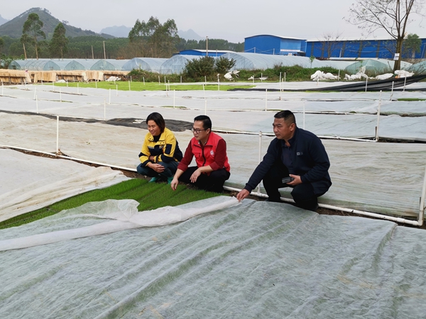 冯斌一行首先实地观摩来宾广荣农业发展有限公司水稻机械化(工厂化)育秧生产线,公司负责人莫丽荣详细介绍育秧及秧苗管理生产情况,提出需要市农科院给予技术支持,助力水稻生产提质增效。冯斌根据基地的实际情况给出建设性的指导意见,建议早稻选择抗病、生育期适中的优质品种,做好育秧床消毒,叠盘暗化处理等,同时也要做好育秧温室大棚温湿度控制,提高早稻育秧成活率。
